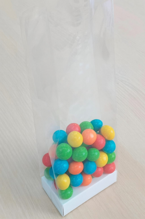 - punga din plastic transparent pt bomboane, ciocolata, drajee, marturii etc + inaltaor carton ALB