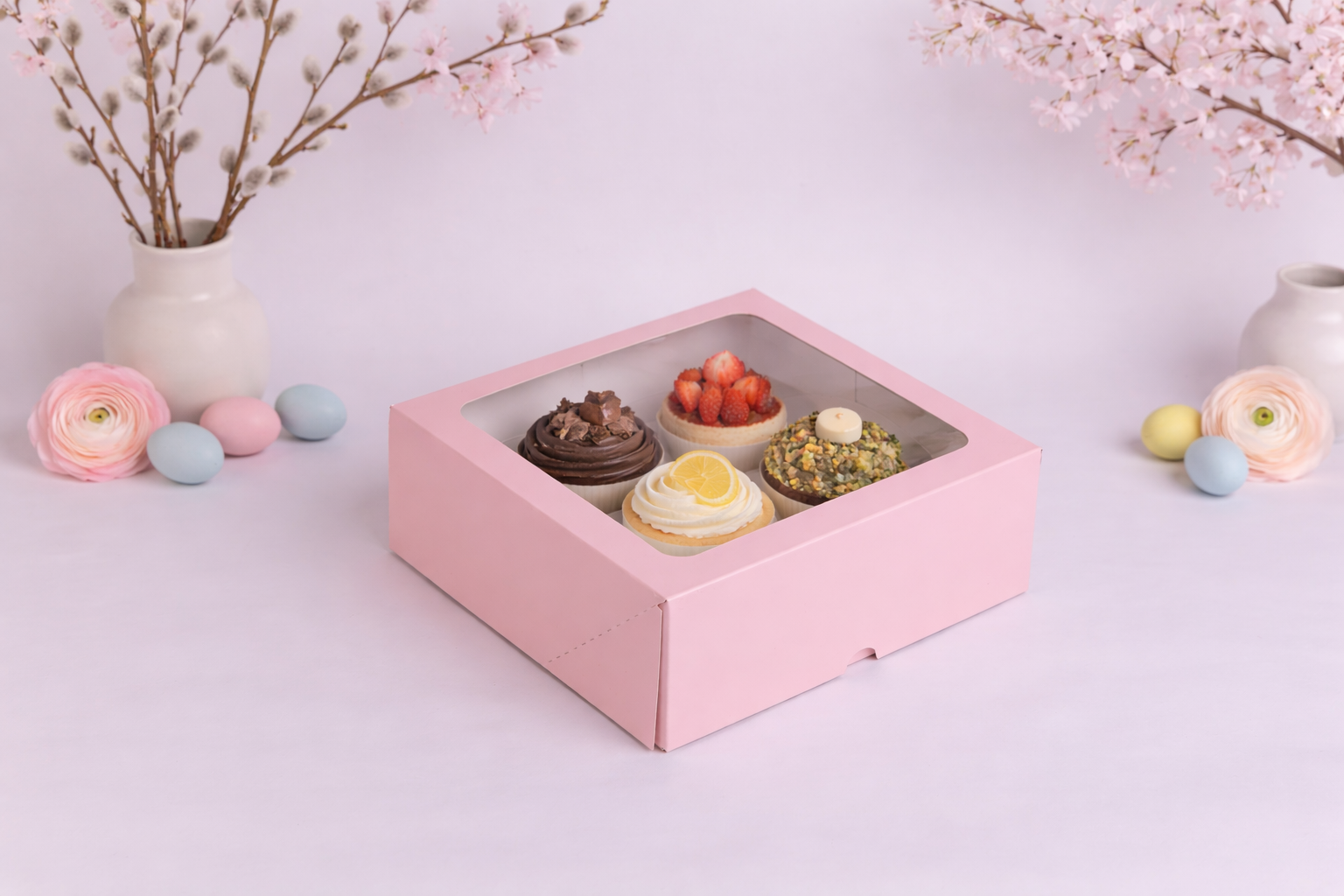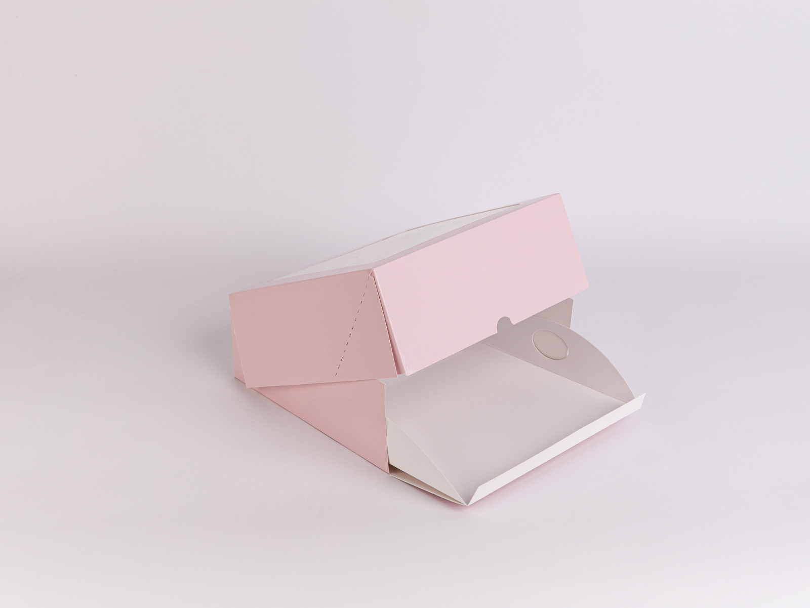 Scatola 20x20x8 cm, apertura frontale, con finestra e vassoio, rosa cipria plastificata esterno lucido, consegnate piatte, set da 5 pz