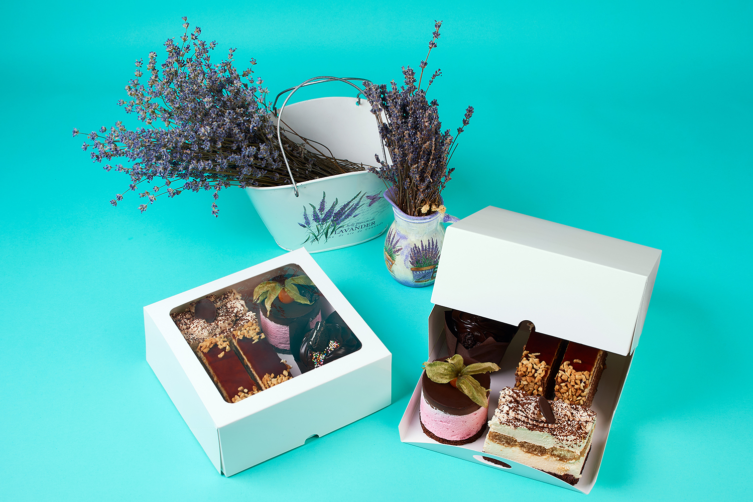 Cutie 16x16x8 cm, cu tavita si fereastra, pentru prajituri