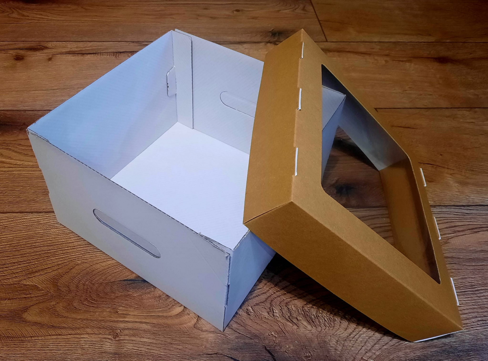 CUTIE TORT 23X23X15 CM, CU FEREASTRA, NATUR, SET 5 BUC