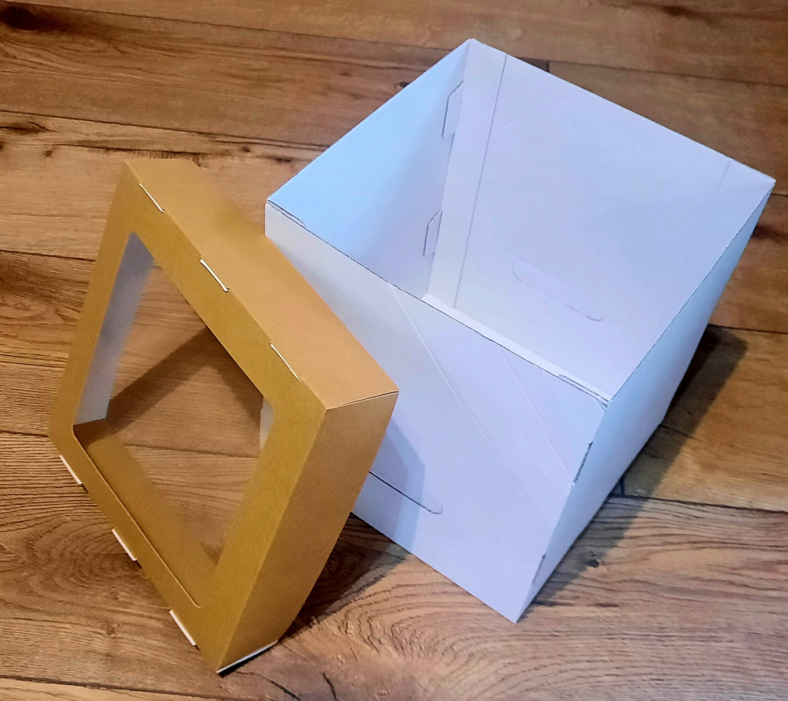 CUTIE TORT 23X23X25 CM, CU FEREASTRA, NATUR, SET 5 BUC
