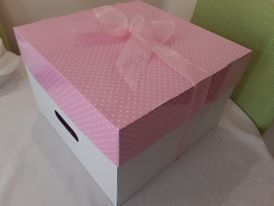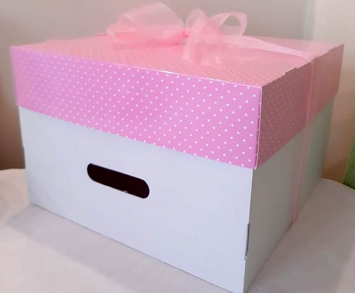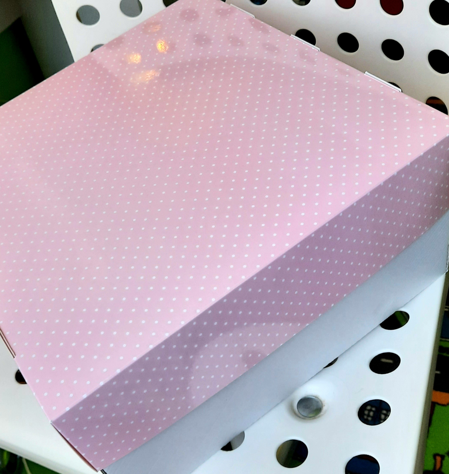 Cutie tort 28x25x15 cm, fund carton ondulat ce poate sustine pana la 5 kg, capac ROZ CU PUNCTE plastifiat lucios, plate, set 5 buc.