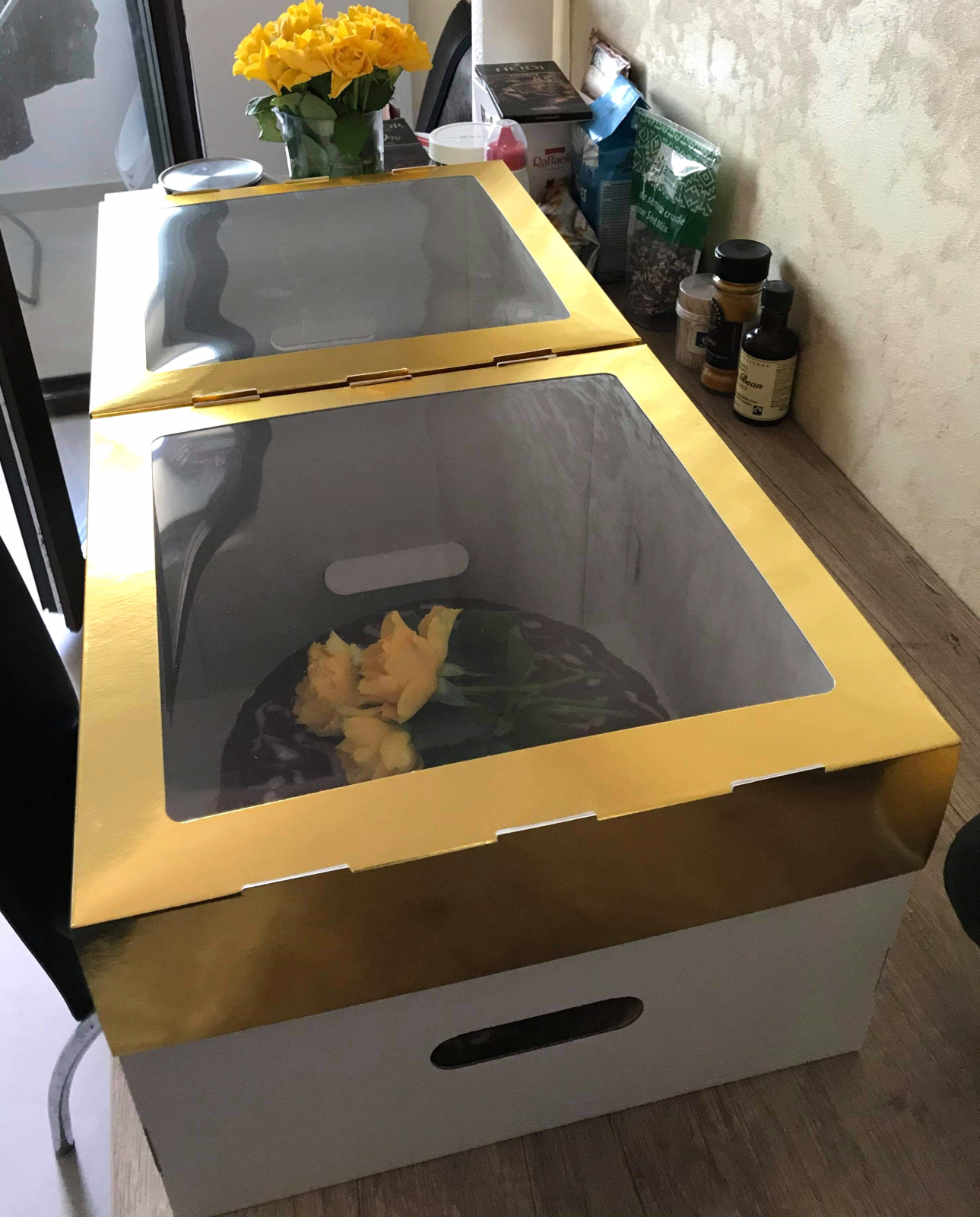 ALLVELO ambalaje si cutii Cutie Pentru Tort 30X30X15 CM, cu fereastră, capac auriu, COD CB0F- Aur, Set 5 Buc